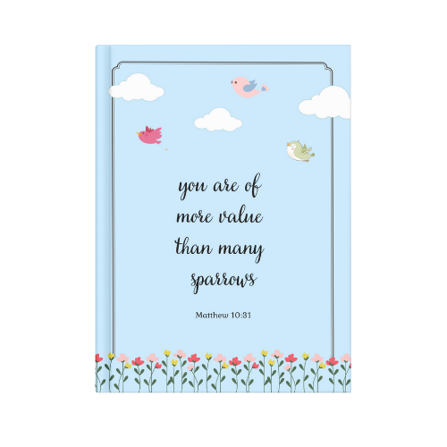 Cover: Hard cover with matte finish featuring custom scripture-printed artwork for daily encouragement.